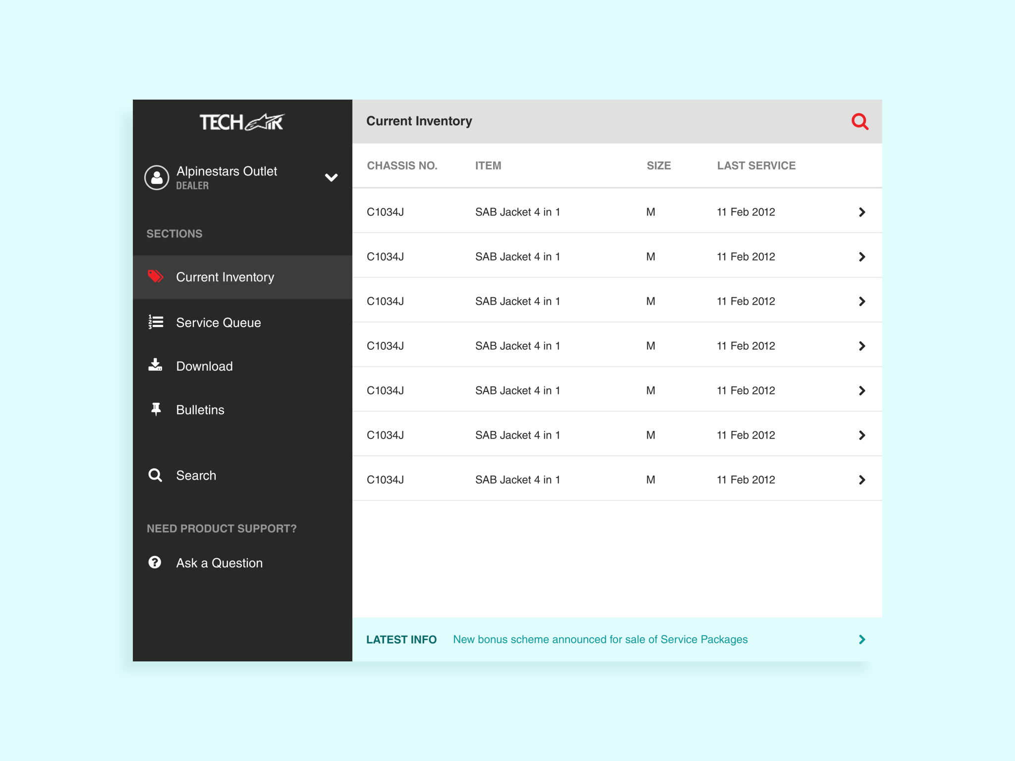 The Tech-Air Data Portal is the digital platform developed to manage the entire lifecycle of Tech-Air airbag devices. It was initially launched in 2013 to support the introduction of the Tech-Air Street system into the consumer market. Designed to translate complex technical processes into clear, usable tools for the Alpinestars dealer network, the project required a deep overhaul of business logic and operational workflows.